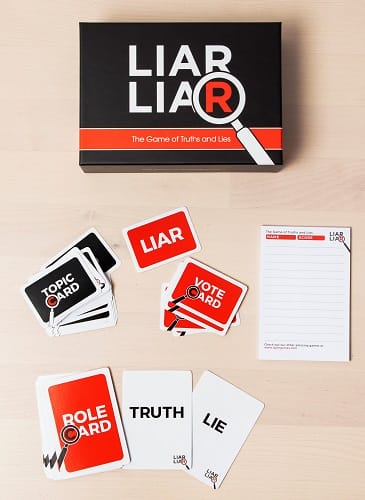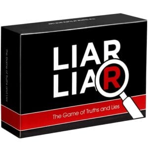 Liar Liar est un jeu de société où les joueurs partagent des histoires personnelles basées sur des cartes de thèmes. A chaque tour, un des joueurs est secrètement un menteur qui doit bluffer les autres, tandis que les autres doivent dire la vérité. Les joueurs gagnent en identifiant le menteur ou en prétendant avec succès être celui-ci.