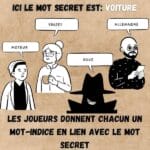 Au début de chaque manche, les joueurs reçoivent une carte indiquant le mot secret, sauf l'Imposteur qui ne reçoit aucune indication.