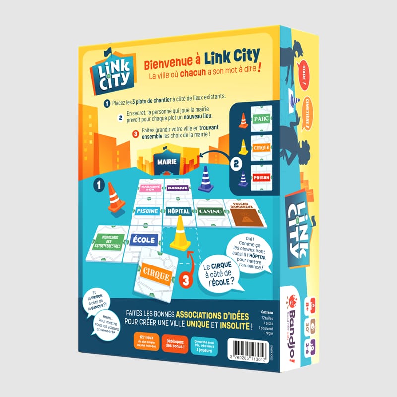 À chaque tour, une personne différente joue le rôle de la mairie. Sa mission : relier secrètement 3 nouveaux lieux aux emplacements marqués par 3 plots de chantier.