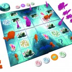 Parmi les cases du plateau on retrouve du plancton (qui permet de faire grandir son poisson), un poisson (qui permet de rajouter un poisson de sa couleur sur le plateau, des épaves (utilisables seulement par les petits poissons) et des cases mystère qui rajoutent un peu d’aléatoire.