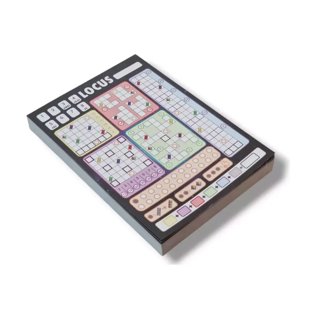 Dans Locus, les joueurs s'affrontent pour obtenir le plus de points possible en remplissant leur feuille de score.