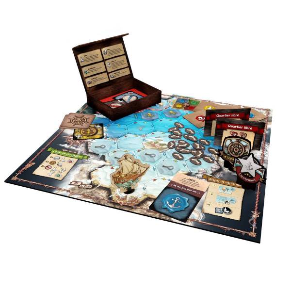À chaque tour, le navire se dirigera dans l’une des trois directions possibles, mais laquelle serait-ce ? Le capitaine actuel et le lieutenant qu'il aura choisi étudieront d'anciennes cartes maritimes et transmettront leurs ordres souvent contradictoires au navigateur choisi, qui devra prendre la décision finale. Pendant ce temps, le reste de l'équipage est occupé à boire du rhum, à jouer et à se raconter des histoires d'anciens monstres marins. Après chaque navigation, le lieutenant et le navigateur quittent leur service, et le capitaine doit trouver quelqu'un d'assez sobre pour prendre leur place. Tout le monde peut discuter de la qualité de la dernière navigation, de qui est responsable du parcours actuel et de qui devrait être responsable à l'avenir. Convainquez vos ennemis qu'il est dans leur intérêt de faire de vous le prochain lieutenant ou navigateur ! Vous pouvez même dégainer vos armes et devenir le nouveau capitaine en cas de mutinerie ouverte ! Mais combien de temps parviendrez-vous à garder la confiance de votre équipage ? La prochaine mutinerie vous attend peut-être déjà si vos décisions ne plaisent pas à vos camarades marins.