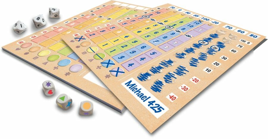 Dans Lost Cities : Roll & Write, vous commencez vos expéditions sur les six chemins colorés avec les plus petits nombres possibles sur les dés.