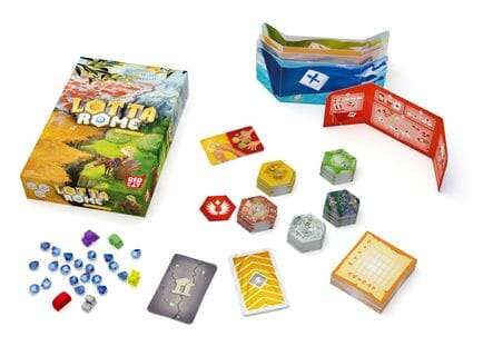 Dans Lotta Rome, les joueurs tentent de construire le domaine le plus rentable en se partageant des territoires entre eux. Les tuiles Terres sont activées grâce à des bâtiments, générant ainsi des points de victoire. Mais pour récupérer ces terres et ces bâtiments, il vous faudra faire des choix. Le jeu repose sur le principe du ""Je sépare tu choisis"" : un joueur sépare ses terres en lots, mais c'est son adversaire qui choisit en première celui qu'il récupère. Et il faudra également prendre en compte, les gemmes, qui rapportent de précieux points en fin de partie. Avec sa durée de partie compacte et ses choix cornéliens à chaque tour, Lotta Rome plaira aux stratèges et aux collectionneurs.