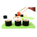 Jeu d'adresse en bois pour deux Chefs Sushis. Avec des baguettes chinoises,chaque joueur compose les recettes de makis dessinés sur une carte (cartes avec des niveaux de difficultés variés). Sur un tapis, il s'agit d'empiler les différents ingrédients en bois (blocs de tailles et formes variées) en respectant la recette, en utilisant seulement les baguettes ! Le premier Chef cuisinier à réussir ses figures gagne la partie. Dextérité, rapidité et sens de l'observation seront de précieux atouts.