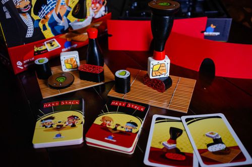Soyez le chef solo ou l'équipe culinaire le plus rapide pour maîtriser l'art de l'empilage de sushi et gagner Maki Stack, qui peut être joué par deux, quatre ou six joueurs.