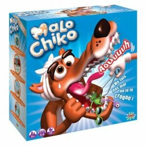 Ce loup a mangé vraiment n'importe quoi, et des objets sont coincés dans sa gueule. A l'aide de la pince, retire délicatement l'objet de la couleur indiquée par la flèche du spinner ! Mais attention à ne pas te faire mordre, et si tu touches son appareil en métal, il risque de relâcher sa terrible mâchoire !
