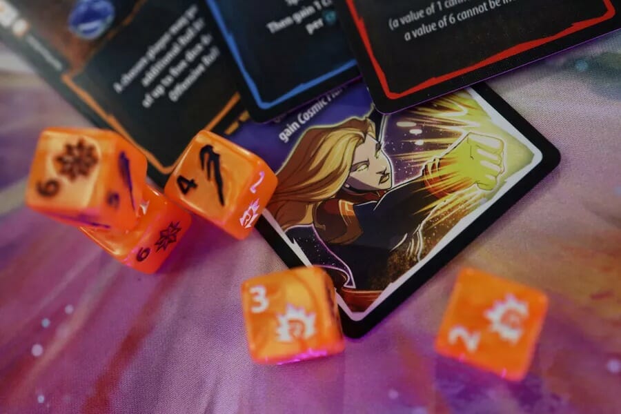 Marvel Dice Throne est un jeu de combat par dés, compétitif ou en équipe, avec des pouvoirs de joueur variables, mettant en scène des héros de l'univers Marvel.