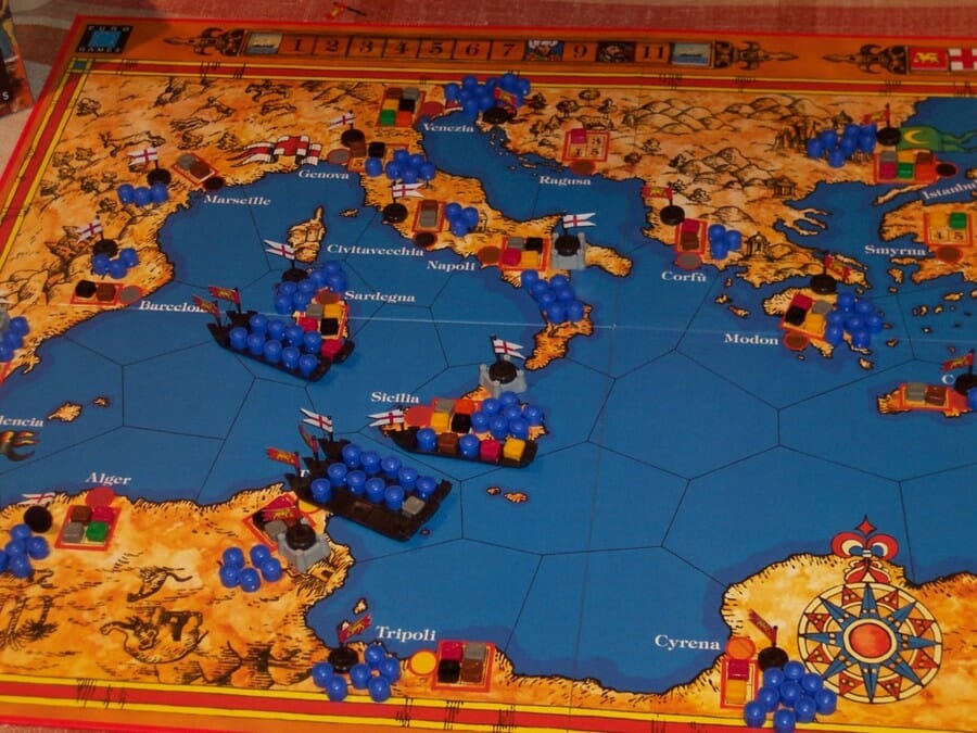 La partie se déroule en tours de jeu (8 tours à 4 joueurs, 10 à 3 joueurs, et 12 à 2 joueurs). L'ordre de jeu se détermine par un système d'enchères. À chaque tour, les joueurs pourront, enrôler des marins, acheter des marchandises, construire des galères ou des fortifications, effectuer les déplacements des dites galères, éventuellement combattre des galères ou des ports ennemis, et enfin vendre des marchandises.