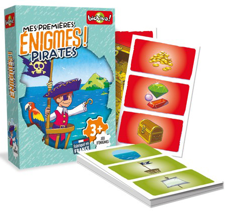 Trois illustrations amusantes et colorées sont dévoilées à tous les enfants. Chaque dessin est un indice qui permet de deviner le mot recherché. Une pièce d’or, une carte, une île… quel enfant devinera le trésor en premier ? Une gamme d’énigmes tout en images qui permet aux enfants de développer leurs capacités d’observation et de déduction.