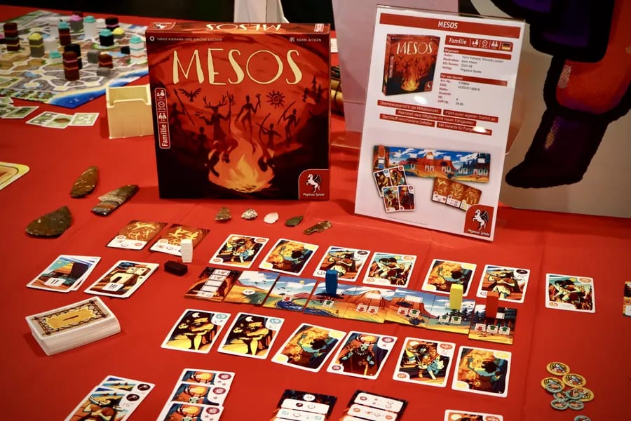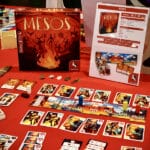 Dans MESOS, vous êtes le chef d'une ancienne tribu, et en tant que tel, votre rôle est de favoriser la croissance de votre tribu en ajoutant de nouveaux membres, en assurant sa subsistance, en construisant des bâtiments et en gérant les événements qui se déroulent. À chaque tour, vous devez placer votre pion totem sur la piste d'offre, puis, en suivant l'ordre des pions sur la piste, vous acquerrez des cartes de personnage ou de bâtiment et les ajouterez à votre tribu. Chaque carte a des effets spécifiques et vous permet de gagner des points de prestige (PP) en construisant des bâtiments spécialisés et en vous préparant judicieusement aux événements auxquels vous devrez faire face.