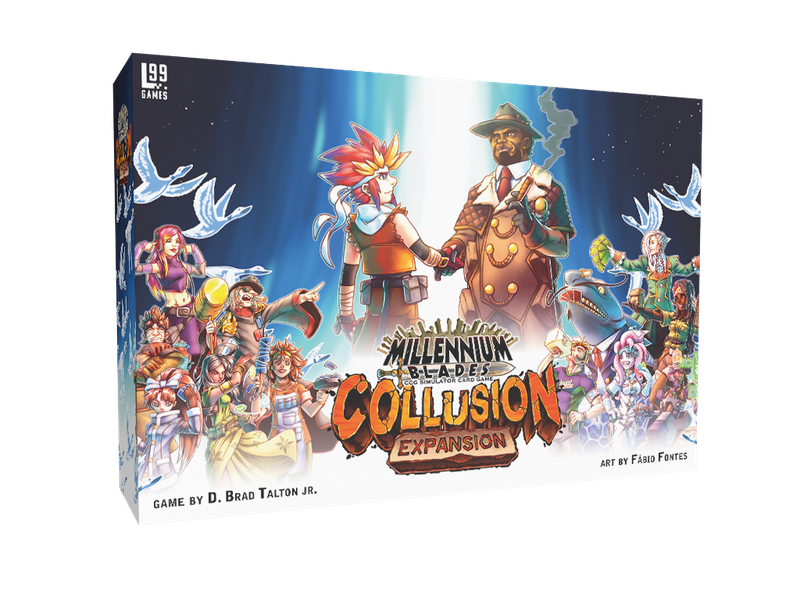 Millennium Blades : Collusion est une extension finale et une solution de stockage pour conclure l'épopée Millennium Blades, avec plus de quatre cents nouvelles cartes, six personnages, le mode équipe, et plus encore.