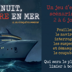 Minuit, meurtre en mer est un jeu d’enquêtes policières scénarisées. Les joueurs, des détectives privés réunis en congrès sur un navire de croisière, cherchent à élucider les circonstances d’un décès suspect…