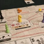 Prix incontestable du meilleur thème de l’année : les soirées gay dans un Londres Victorien puritain. Ah oui. Cole Werhle (Root, Pax pamir) est co-auteur sur ce jeu où l’équilibre entre trop et trop peu est le cœur de l’action. Un plateau avec une piste sur laquelle on se déplace dans des zones de couleur pour y draguer (piocher des cartes), organiser des fêtes (gagner des points de réputation), prendre des pouvoirs (se planquer lors d’une descente de police) et une piste de dés sont le terrain de jeu de ces messieurs dames. Les dés servent à se déplacer ou retirer des cartes au marché car Molly House est également un jeu de cartes (avec des illustrations d’époque) avec valeurs et malus. Pas vraiment de plis à faire mais des combinaisons lors d’une soirée. Cela rapporte des points qu’on comptabilise sur une piste. Si le but est d’être devant, il faut également que le pion commun soit devant. Il faut être dans la coopération tout en travaillant pour sa pomme. Equilibre donc et plus encore avec les points de réputation liés à une couleur. Vous en avez beaucoup c’est bien, sauf si cette couleur (et le lieu qui lui correspond) subit une descente des gens bien pensants. On peut vite perdre des points, se prendre des méga malus de fin de partie, voire se faire pendre ! Un exemple, Je gagne par exemple la partie en ayant géré des objectifs alors que jusqu’au dernier tour je suis à la traîne, mes collègues s’étant enflammés à coups de réputation et le paient cher quand la police, the Society for the Reformation of Manners, s’intéresse à eux (bon j’avoue que je les ai un peu trahi vers la fin). Ce petit blabla peut sembler bien obscur, en prime, c’est un jeu de dés et de combinaisons de cartes et on aura vite fait de le trouver chaotique. C’est normal, les jeux de l’auteur ne se livrent jamais en une fois, il faut creuser et creuser, c’est encore le cas cette fois. Pour notre plus grand plaisir.