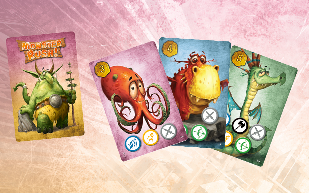 Monster Rush est un jeu de rapidité où les joueurs révèlent des cartes Armes et Sorts dans le but de capturer les plus gros monstres pour remporter la partie. Qui sera le plus rapide ?