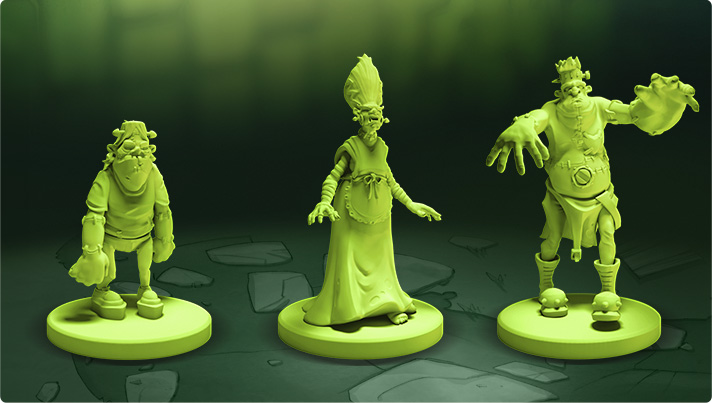 Chaque membre dispose de sa figurine unique et d’une carte de capacités lui étant rattachée.