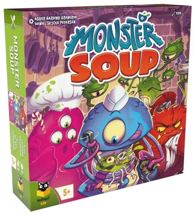 Dans Monster Soup, chaque joueur doit trouver les bons ingrédients dans son propre sac, en utilisant uniquement le toucher ! Globe oculaire, araignée, ver de terre, tous les ingrédients ont une forme spécifique, que vous devrez reconnaître pour suivre la recette !