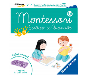 Les points forts : système d'autocorrection, coffret développé avec l'aide de consultantes Montessori, des illustrations douces et réalistes, la qualité et le savoir-faire des jeux Ravensburger, un matériel sensoriel avec du sable coloré.
