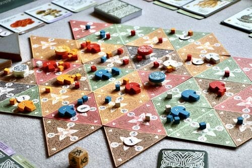 Le plateau est composé de tuiles triangulaires qui représentent les différents environnements et les nutriments dont les champignons ont besoin pour pousser. Ces tuiles peuvent être ajoutées au plateau par les joueurs, de sorte que le plateau grandit et évolue en permanence.