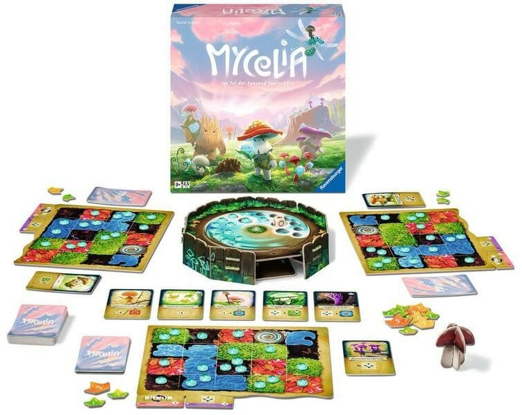 Chaque joueur commence avec le même jeu de cartes dans Mycelia, et améliore son jeu avec de meilleures cartes au cours du jeu, tout en faisant la course pour éliminer les gouttes de rosée de son terrain de jeu en premier.