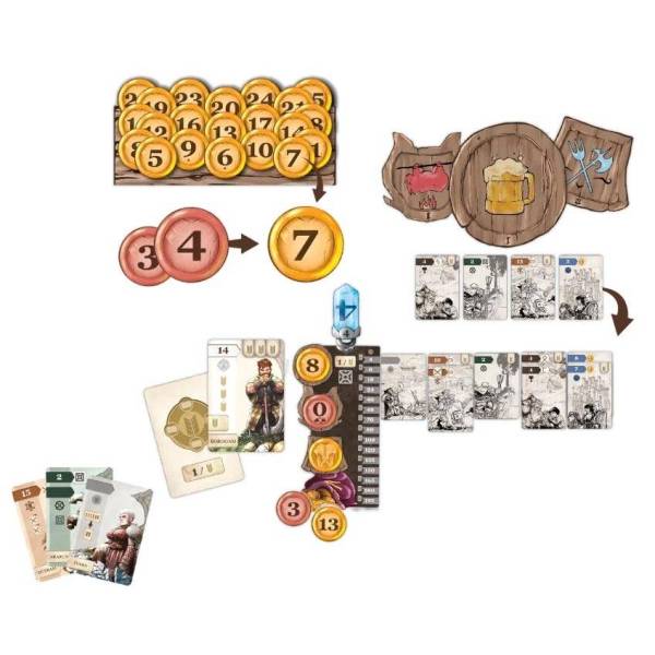 A chaque tour, misez une pièce sur chaque taverne.