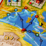 Vous déterminez votre capacité de mouvements et vous allez remplir vos contrats dans les villes méditerranéennes (vous devez les honorez dans l'ordre dans lequel vous les avez choisi).