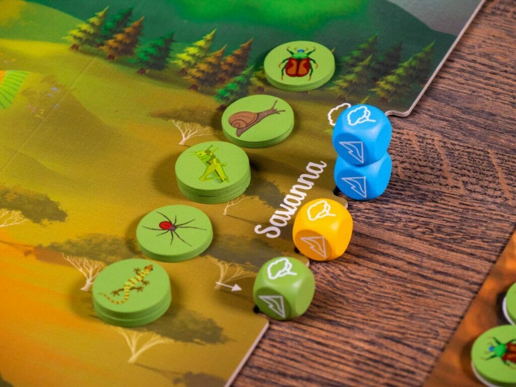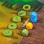 Cependant, si un autre joueur place plus de ses dés de biome dans ce même biome, il devient prioritaire. Une fois que l'ordre de priorité a été établi pour le biome, les joueurs réclament chacun des ressources pour nourrir leurs petits et gagnent le segment correspondant à ajouter à leur anneau de ressources sur leur plateau de joueur.