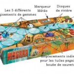 - 40 gemmes de 5 sorte : le rubis (de couleur rouge), le diamant (de couleur blanche), le saphir (de couleur bleue), l'ambre (de couleur ambre/jaune) et l'améthyste (de couleur violette) 1 marqueur de météo symbolisé par un nuage en bois