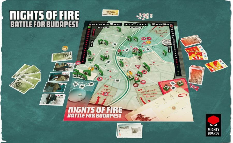 Nights of Fire : Battle for Budapest est le deuxième jeu d'une duologie adaptant les événements de la révolution hongroise de 1956 à la forme moderne du jeu de plateau. Après le succès hongrois dans la première partie, ce jeu commence lorsque l'Armée rouge arrive aux abords de la capitale et pousse au coeur de la ville, déterminée à se venger, à détruire et à poursuivre impitoyablement le contrôle. Pour les joueurs en charge de la défense hongroise, il ne reste plus de temps pour l'organisation et la sédition. C'est une guerre de survie sans espoir, purement et simplement.
