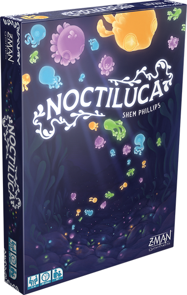 Dans Noctiluca, 104 dés translucides colorés remplissent le pool sur le plateau de jeu pour représenter les différents noctiluca lumineux.