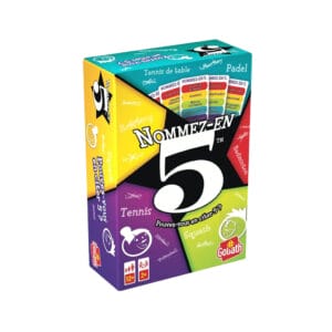 Emportez Nommez-en 5 partout avec vous ! Pensez aux fêtes de famille, aux anniversaires ou bien aux voyages en voiture ou en vacances ! Idéal pour les jeux d'équipe avec de grands groupes de 12 ans et plus.