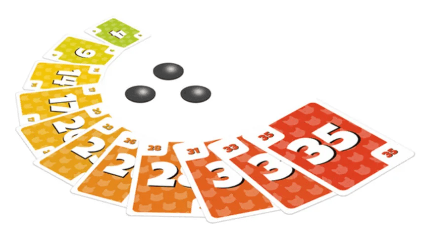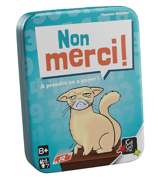 À votre tour de jeu, faites le choix d’accepter une carte ou de dire « Non merci ! » en posant l’un de vos jetons sur la carte refusée. C’est ensuite au joueur suivant de prendre une décision et éventuellement de récupérer votre jeton. Chaque carte acceptée fait perdre des points. Mais si vous reconstituez les suites, vous ne perdez que la valeur de la plus petite carte de la suite. Gérez au mieux vos jetons, car, de toute façon, il vous faudra accepter des cartes.