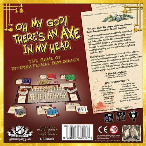 Dans "Oh My God ! Il y a une hache dans ma tête". Le jeu de la diplomatie internationale, les grandes puissances restantes profitent de la confusion pour se passer le marteau entre elles, mener des affaires internationales au milieu du chaos et, de manière générale, essayer de modifier l'équilibre du pouvoir mondial tout en échappant à une bande de psychopathes armés.