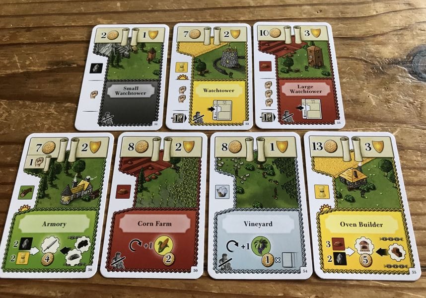 L'extension comprend également quatre cartes de personnages, 34 nouveaux bâtiments (de sept types différents), 22 cartes d'événements (en allemand et en anglais) et 14 cartes de chapitres (idem).