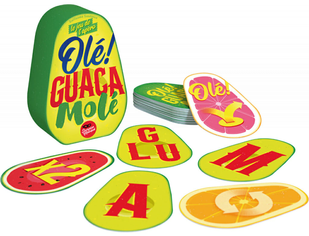 Olé Guacamolé est un jeu d'apéro, dans lequel vous devez trouver des associations de mots sans utiliser des termes qui possèdent l'une des lettres présentes au centre de la table.