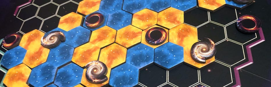 Vous pouvez gagner de 3 façons différentes : en connectant 2 côtés opposés du plateau avec une chaîne ininterrompue d'hexagones de votre couleur ; en collectant 4 PIÈCES GALAXIE sur des hexagones connectés de votre couleur ; ou en faisant en sorte que votre adversaire obtienne 3 PIÈCES TROUILLE NOIRE sur des hexagones connectés de sa couleur. Faites attention à ces trois possibilités ! Ne laissez aucune d'entre elles vous échapper.