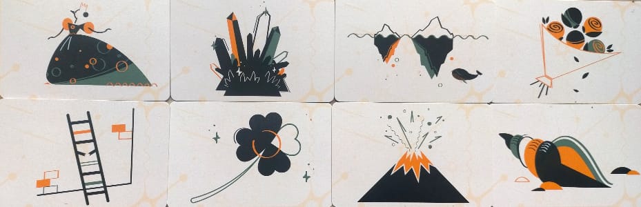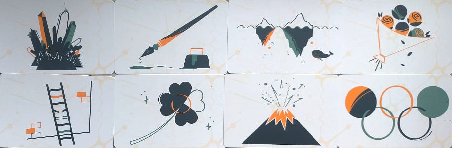 Définissez ensemble l'objectif à atteindre, puis échangez pour associer les cartes qui vous semblent pertinentes, mais... sans décrire ce que vous y voyez !