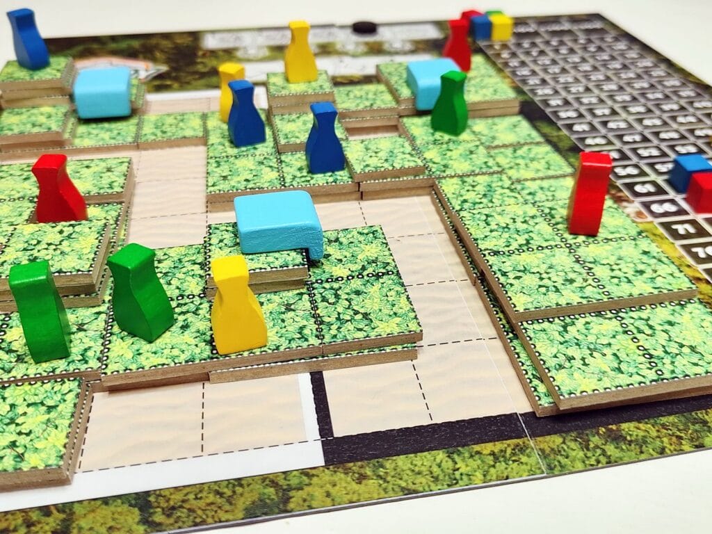 Tout en collaborant avec les autres pour sculpter un paysage de terrasses et de canaux d'irrigation, vous êtes également en compétition pour obtenir les meilleurs pâturages pour votre espèce. Chaque décision que vous prenez influence la croissance de la rizière et l'irrigation de ses champs. Le gagnant sera celui qui aura le plus de points à la fin des quatre cycles.