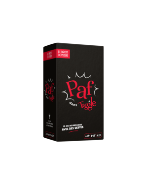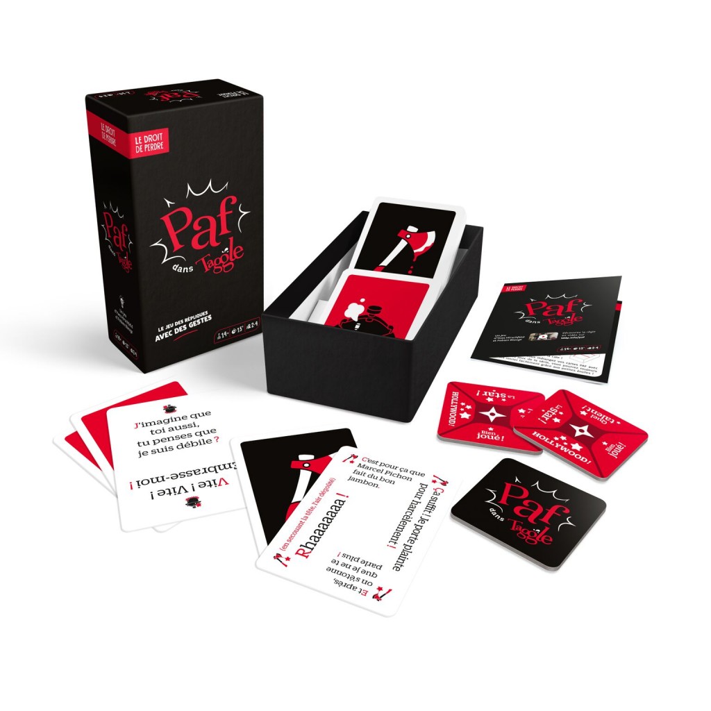 Un jeu d'humour pour jouer à fond à 2, 3 ou 4 joueurs ! Dans la boite : 70 réflexions, 100 répliques et 4 compteurs. Pour encore plus de fun, mixe PAF avec Taggle, Ta bouche et Taggle d'Amour !