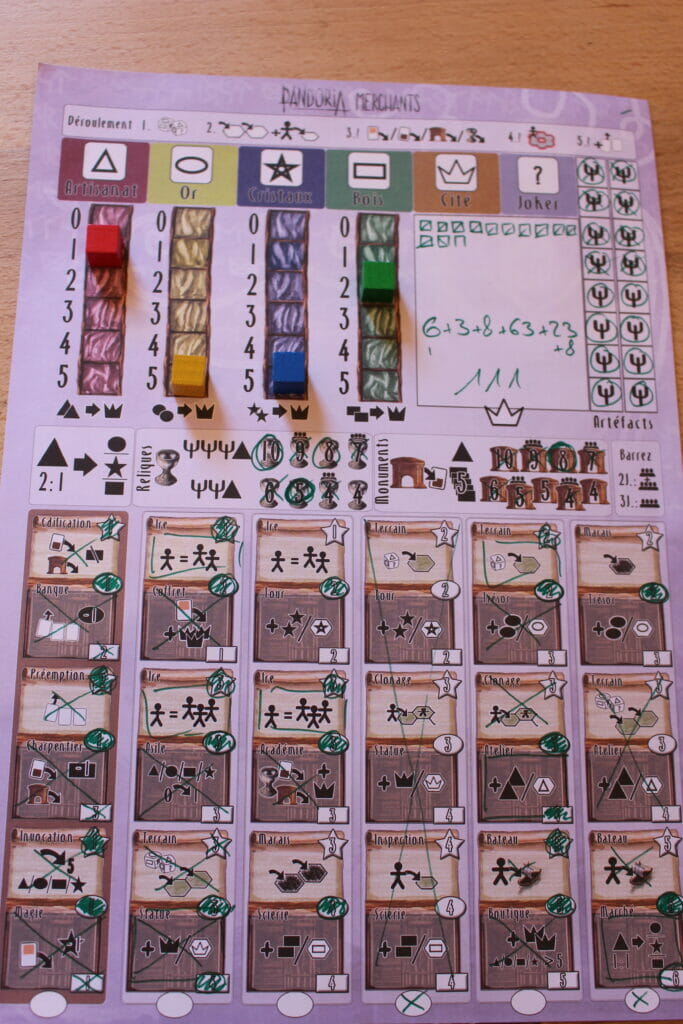 Les ressources excédentaires peuvent être converties en Points de prestige, et certains bâtiments peuvent en générer davantage. Quand la nouvelle terre a été entièrement explorée (toutes les tuiles ont été placées), le joueur avec le plus de prestige est déclaré la nation la plus puissante de Pandoria et gagne le jeu !