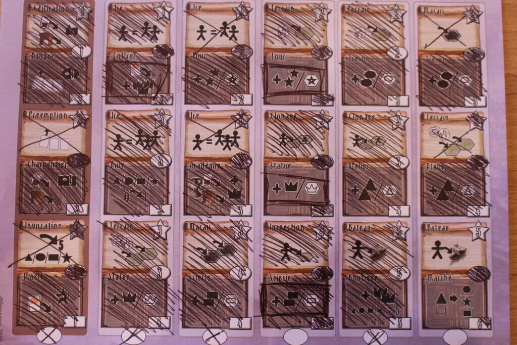 Mécanismes : Cartes personnages, Gestion de main, Majorité, Pose d'ouvriers, Tuiles