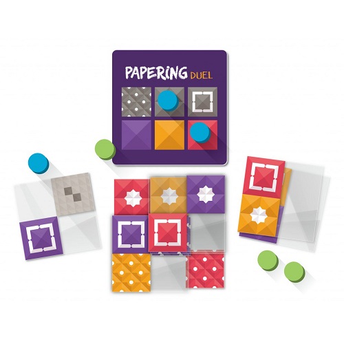 Papering Duel est un jeu abstrait à 2 joueurs avec des cartes transparentes.