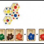 1. Placer un hexagone (Placez l’un de vos deux hexagones adjacent par au moins un côté à la pièce de départ composée de 3 hexagones, ou à un hexagone précédemment placé) et prendre des cartes de palette