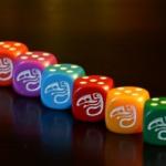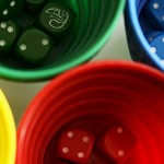 Chaque joueur prend un gobelet et les 5 dés de la couleur correspondante.