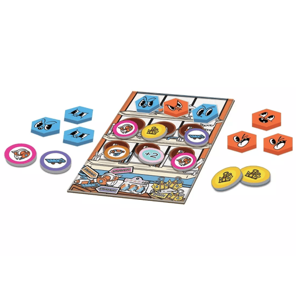 Chaque manche propose des choix stratégiques : collecter des objets pour des points ou placer des pions sur la grille pour les aligner.