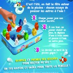 - 6 jetons 18 pions 1 fond de piscine 37 autocollants 1 règle du jeu 1 piscine en 3D