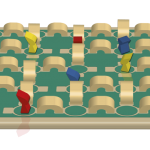 Un joueur à son tour, doit déplacer un de ses pions d’une case et soit retirer un pont soit déplacer un pont d’un quart de tour sur l’axe d’une case.