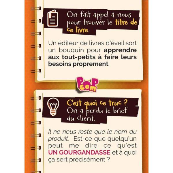 Grâce à vos compétences créatives (réelles ou simulées), tentez de briller au sein de l’agence Pop Com. Soyez le ou la plus incroyable des pubards en remportant un maximum de projets !