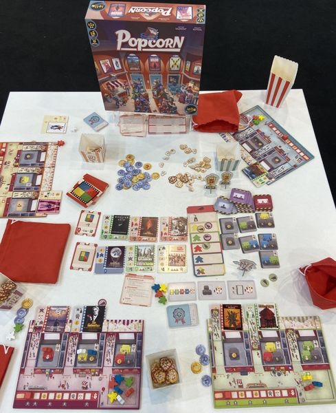 Dans Popcorn, chaque joueur gère son propre cinéma et essaie de présenter la meilleure combinaison de films afin d'attirer des clients dans ses fauteuils.