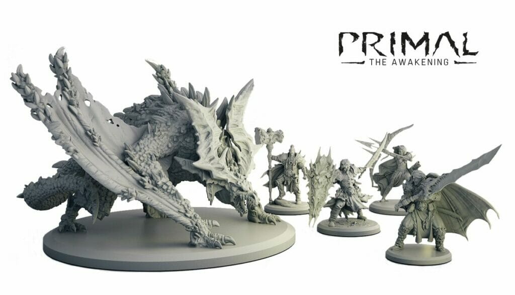 Primal: the Awakening est un jeu de plateau de chasse aux monstres entièrement coopératif pour 1 à 4 joueurs dans un monde fantastique où les humains luttent pour survivre dans une nature sauvage.